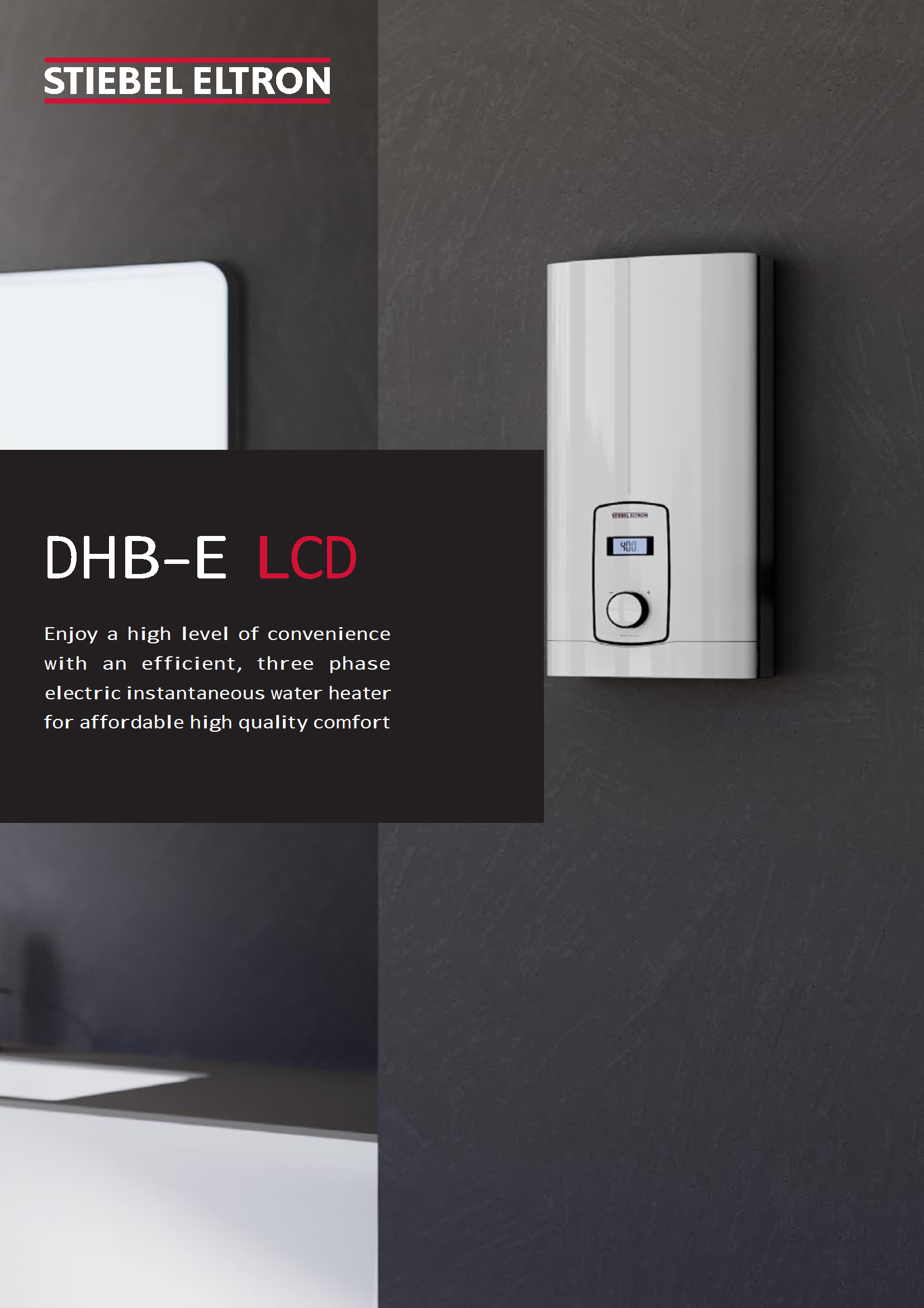 It is an instantaneous water heater. Accurate temperature settings are obtained by using the LCD controller. This allows you to adjust the water temperature between 20 and 60 °C.